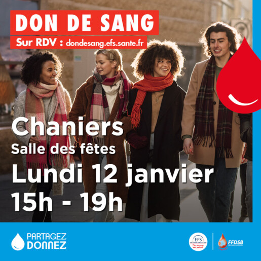Donnez votre sang lundi 12 janvier, de 15h à 19h,…