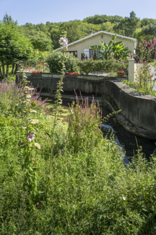 - A un moment, la clôture laisse un passage sur la gauche qui amène à une route goudronnée. Prendre à droite vers le moulin de la Baine. Emprunter la terrasse du restaurant, traverser la passerelle et faire le tour de l’île en passant devant la maison éclusière.