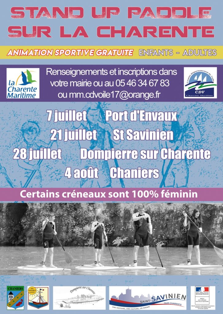 Le Comité Départemental de Voile vous propose de venir essayer gratuitement le paddle board le 4 août à Chaniers.