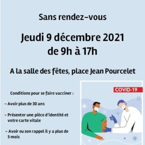 Venez vous faire vacciner sans rendez-vous jeudi 9 décembre 2021 de 9h à 17h